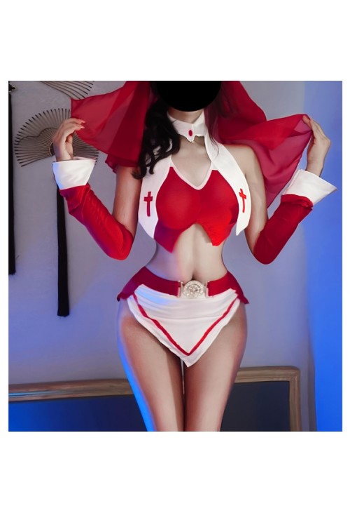 Punishment Nun Uniform Adult Cosplay Costume New Pure and Desire Set (Red)